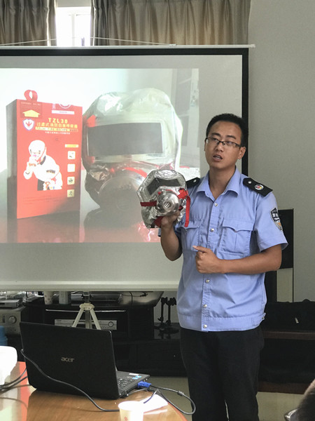 講座中,陳教員列舉了大量事例,詳細、生動地向大家講述了火災預防、初起火災撲救、火災現場自救逃生、高樓自救逃生以及家庭防火與逃生的基本常識。他用詼諧幽默的語言將冷冰冰的火災案例講解得繪聲繪色,并通過提問的方式與大家進行現場互動。在學習中,所有人員積極給予配合響應,現場氣氛極其活躍。