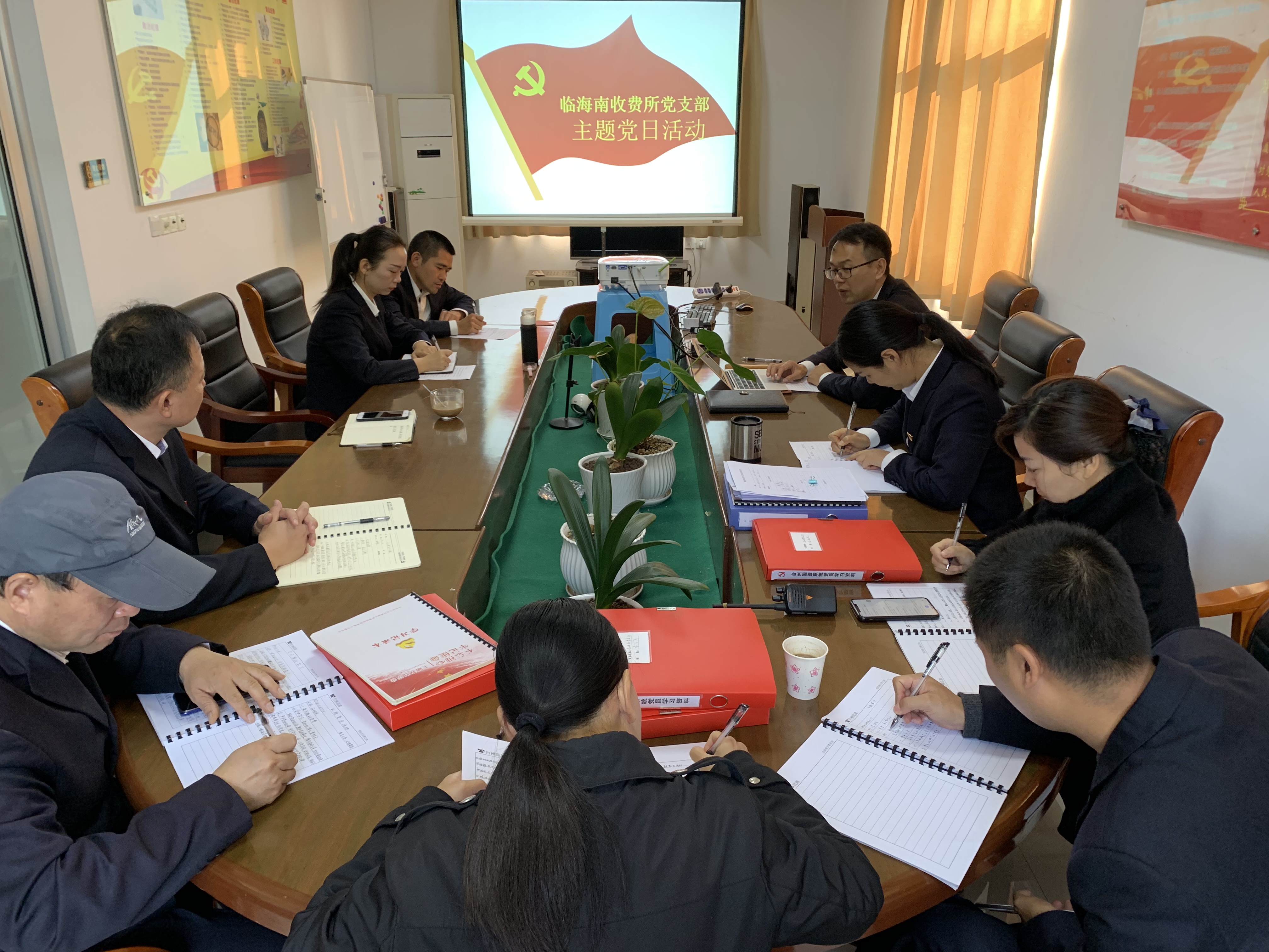 臨海南收費所黨支部開展主題黨日活動 為深入開展“不忘初心、牢記使命”主題教育,不斷推動收費所黨支部作風持續向好。11月13日上午,臨海南收費所黨支部開展主題黨日活動,黨支部書記孫明偉就“如何增強黨員意識,發揮黨員先鋒模范作用”為大家上了一堂黨課。全體黨員、入黨積極分子參加此次活動。