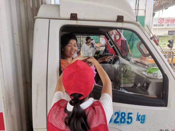 臺州南收費所志愿者開展“送清涼”活動 “還是家鄉的服務溫馨!”一位從上?;貋淼?span style="font-family:楷體_GB2312">司乘人員有感而發!