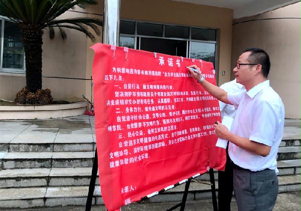 圖為員工對外廣場邊溝衛生進行清理 臺州收費所(浦西)區域作為進出臺州市的西大門,是重要通道之一,區域內的6家單位及部門都是高速公路服務主體。 會議向全體臺州收費所(浦西)區域內的員工發出倡議:號召大家做文明市民,樹文明新風,為創建全國文明城市貢獻力量,擔當起應有的責任。隨后,與會人員紛紛在“承諾書”上簽名,區域內各單位部門立即對周邊環境衛生進行全方面檢查整治。 鄭瑛芝