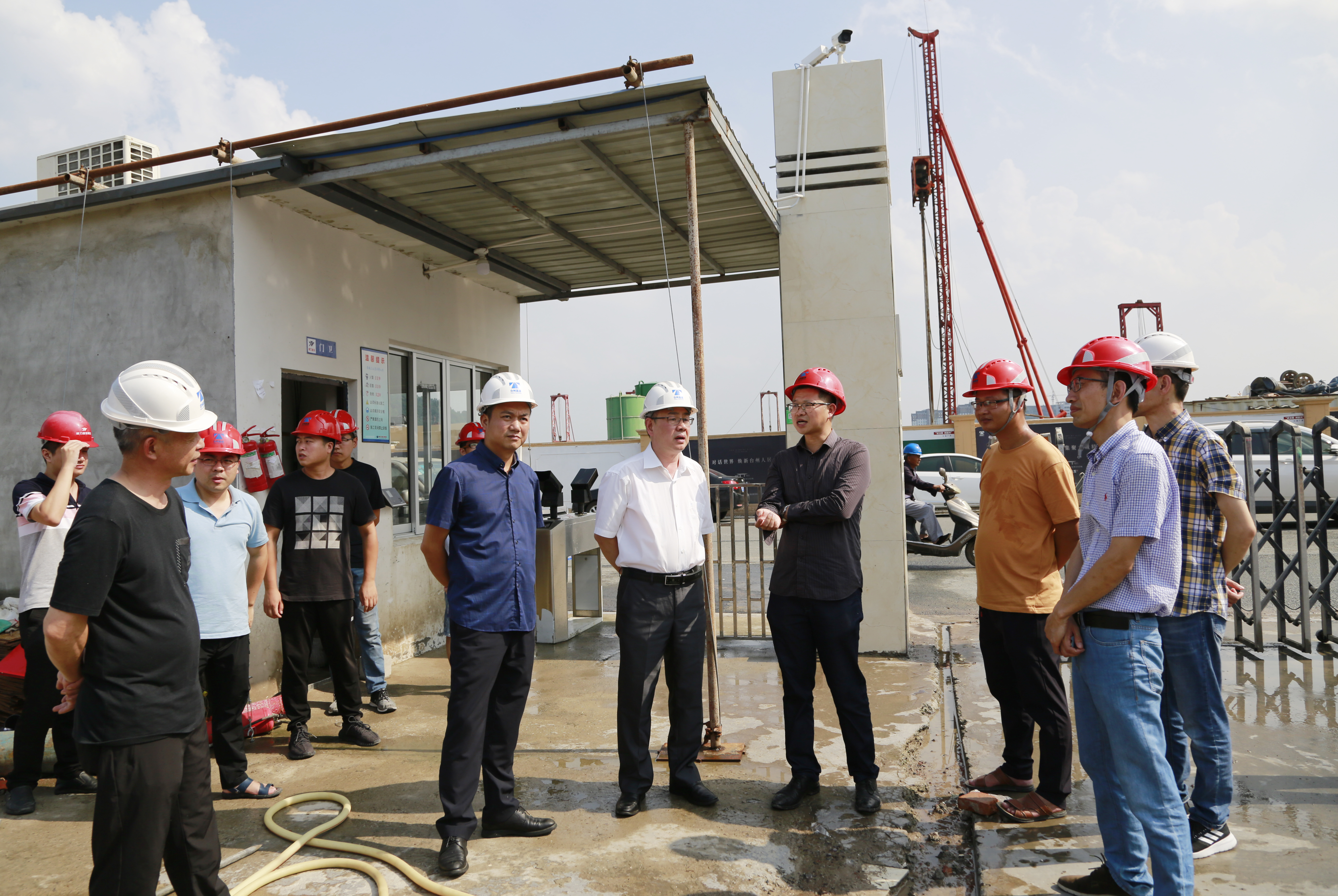 圖為陳文波在黃巖玖璽逸墅項目工地檢查臺風過后工地情況 8月12日,陳文波在羅小將的陪同下,趕往椒江文鼎苑、黃巖玖璽逸墅項目施工現場,檢查指導臺風過后工地復工準備工作。陳文波要求房產集團和施工單位要及時清溝排水、清理垃圾,抓緊修復損壞的物件設施,同時做好衛生防疫。所有人無論何時都要把安全作為頭等大事來抓,仔細檢查電力設施等不容易發現的險患,防止次生災害的發生,搶時間,抓復工,把臺損降到最低限度。 高速房產集團此前由于防臺措施得力,在臺風過后又立即組織開展生產自救,使得在建項目沒有造成較大損失。陳文波對房產集團和施工單位的抗臺工作給予充分肯定。