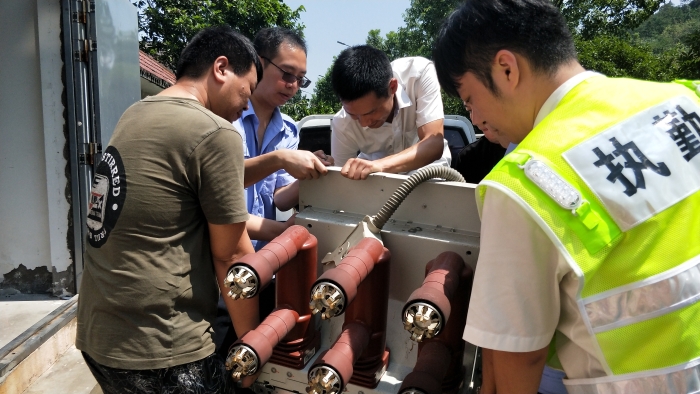 圖為江輝向維養中心人員了解設備損壞維修情況 江輝仔細檢查了解臺風過后各所以及沿線路段設施設備受損維修情況,要求相關人員能維修解決的自己解決,在解決過程中遇到困難的及時和其他部門聯系和溝通,盡快恢復設備正常運行,保障路段安全暢通。