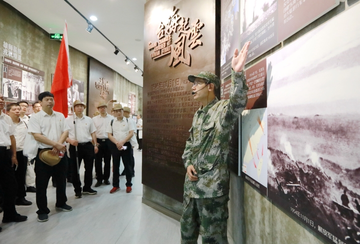 走進一江山島戰役遺址史料館,一幅幅記載戰爭歷史的老照片,一件件留存戰爭氣息的武器裝備,把大家“穿越”到了那個激情燃燒的年代。透過史料館的資料,大家仿佛依舊置身于炮火連天的歲月之中,身臨其境,切身感悟“不怕艱險、智勇堅定、團結奮斗、不勝不休”的一江山精神。