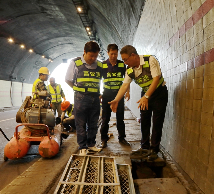 斷流施工首日,董事長陳文波來到路段現場檢查施工作業 8月19日凌晨5點,確保路面沒有社會車輛后,在臺州收費所早已等候多時的施工車輛設備開始進場,這標志著臺州高速這條甬臺溫交通大動脈開始了為期十四天的迎國檢路況提升施工。 8月19日為甬臺溫高速(南塘樞紐至三門互通)、上三高速(吳岙樞紐至天臺互通)實行單向斷流施工的第一天。