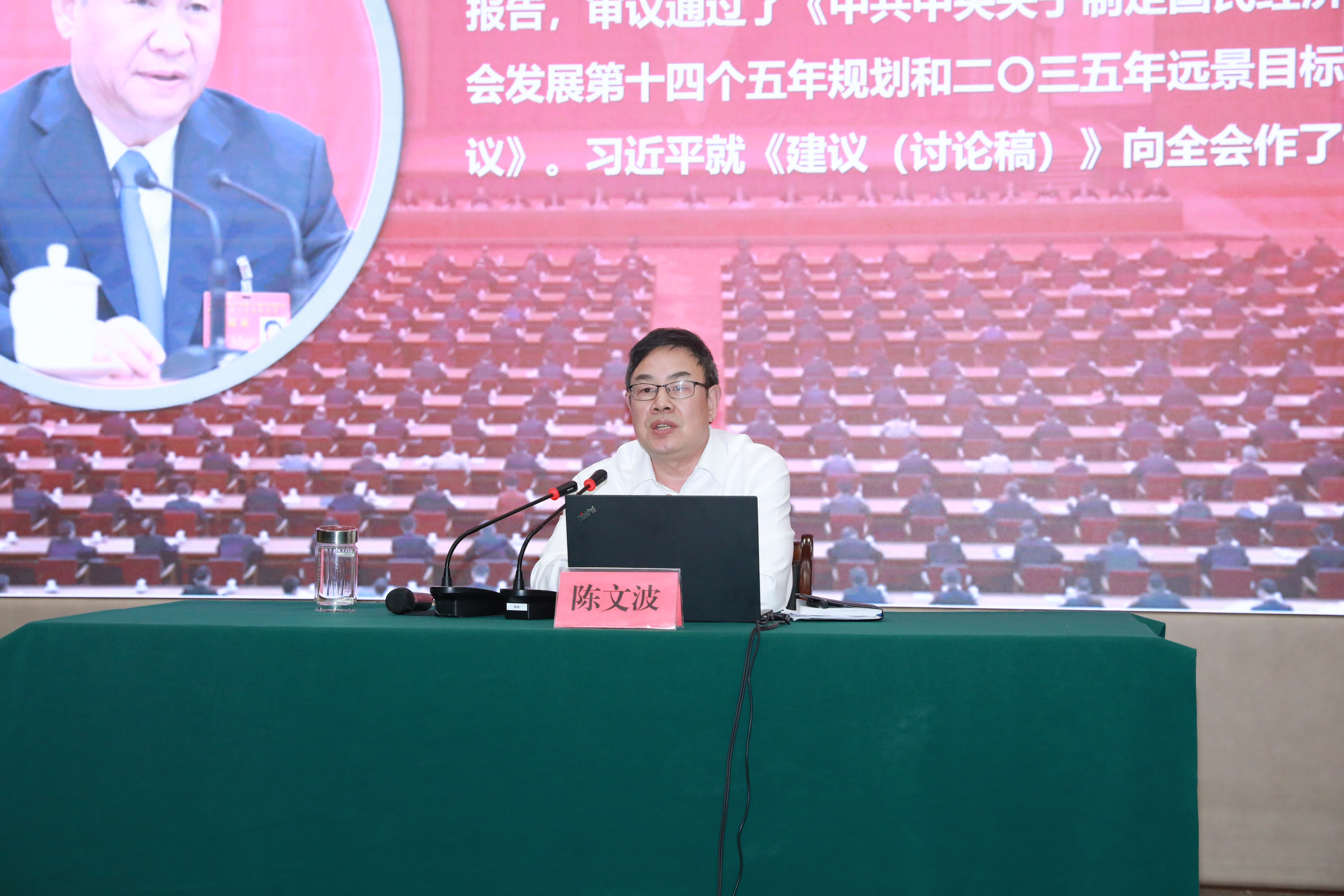 陳文波指出,黨的十九屆五中全會是在我國即將全面建成小康社會、實現第一個百年奮斗目標,乘勢而上開啟全面建設社會主義現代化國家新征程、向第二個百年奮斗目標進軍之際召開的一次具有全局性、歷史性意義的重大會議。深入學習宣傳貫徹黨的十九屆五中全會精神,是當前和今后一個時期的重要政治任務。