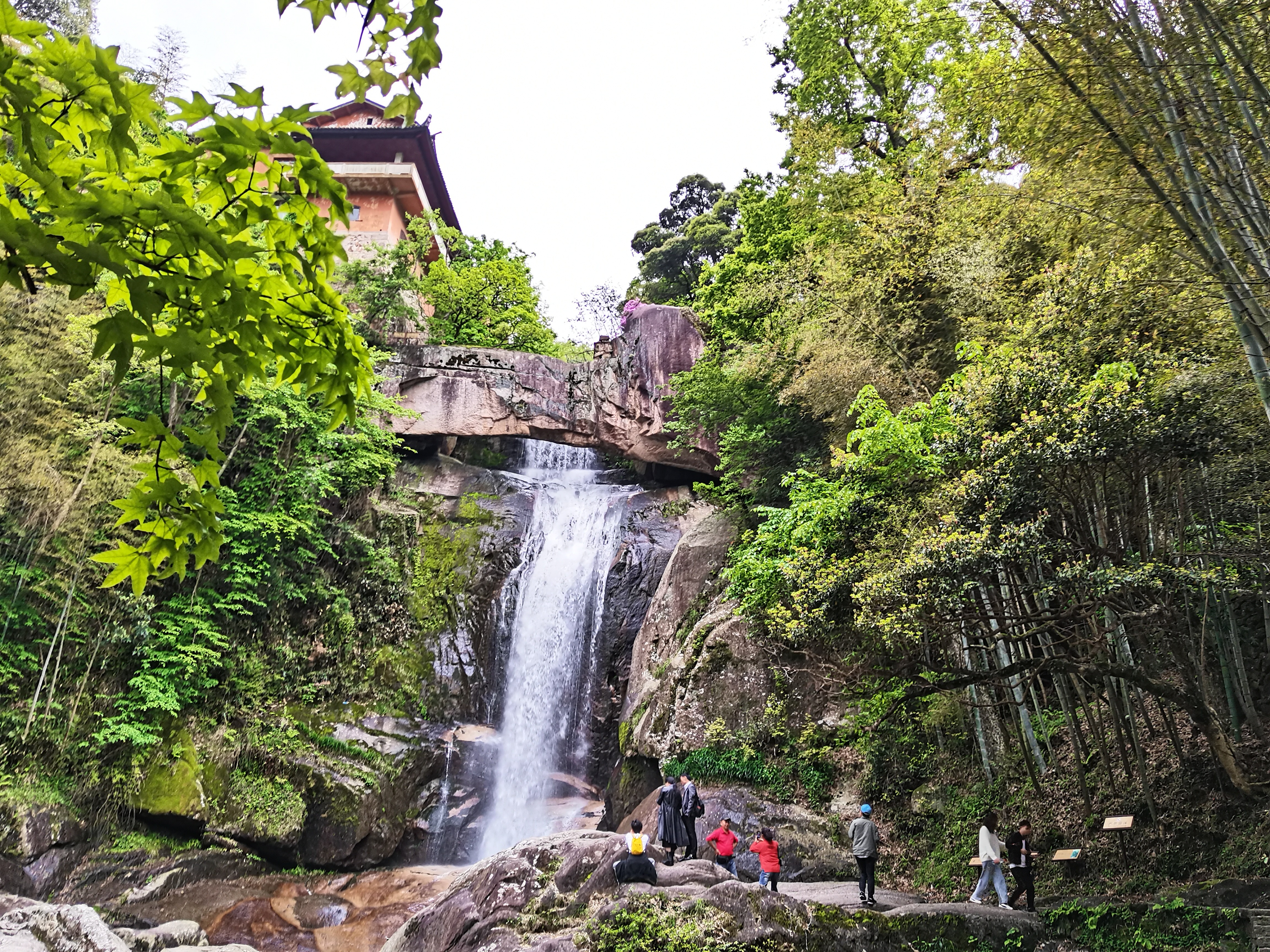 石梁景區內,清澈見底的湖水、漫山遍野的樹木,大家伴著聲聲鳥鳴,欣賞了令無數文人墨客嘆為觀止的優美景色。其中最讓人拍手叫絕的,要數著名的“石梁飛瀑”了,越是靠近瀑布,激起的水花在微風的吹拂下帶來陣陣涼意,抬頭觀瀑,真有“飛流直下三千尺,疑是銀河落九天”的壯闊之感。 一天的時間在歡聲笑語中飛快地流逝,員工們在與大自然的親近中,擁抱了春天,放松了心情,鍛煉了身體,同時,旅途中大家互幫互助、談笑嬉戲,大大增進了彼此的情感和默契。 【國清寺概況】國清寺位于浙江省臺州市天臺縣城關鎮,始建于隋開皇十八年(598年),初名天臺寺,后取“寺若成,國即清”,改名為國清寺。寺廟占地面積7.3萬平方米。國清寺現存建筑為清雍正十二年(1734年)奉敕重修。2006年,國清寺被國務院批準為第五批全國重點文物保護單位。 【石梁景區概況】石梁景區位于浙江省臺州市天臺縣石梁鎮內,是天臺山風景名勝區的精華所在。這里有世界上罕見的瀑布和天生橋巧妙結合的石梁飛瀑,有舉世聞名的佛教五百羅漢道場“方廣寺”,有法華晨光、龍游澗等多個主要景點……千古石梁,天下奇觀,瀑以梁奇,梁以瀑險,山、石、水奇妙結合,歷來被譽為天臺山風景之“眉目”。 項淑珍