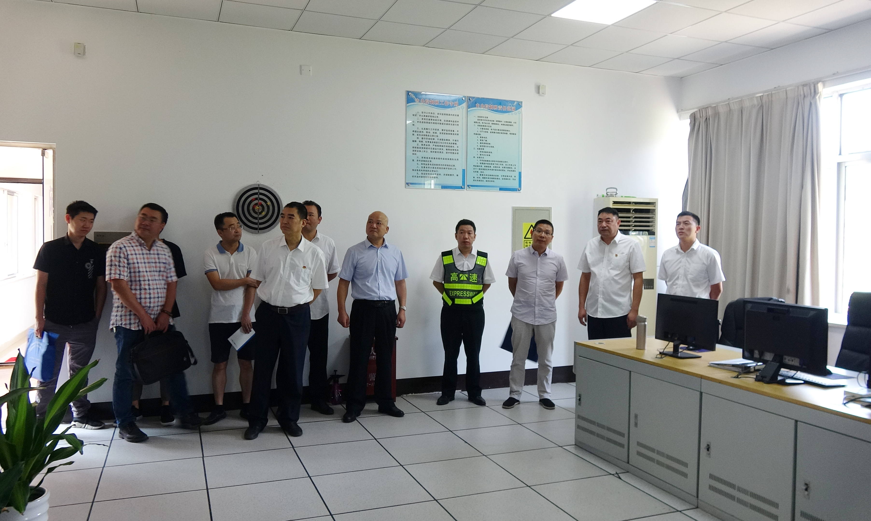 市交投集團到公司開展第三季度安全生產大檢查 9月17日上午,市交投集團營運部經理錢衛建、安全監督管理部副經理王超帶領部門相關人員到公司檢查“迎大慶、保安全”工作開展情況。公司安全總監項同富和安保部全體人員參加會議。