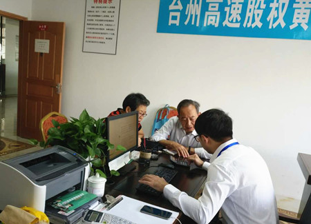 圖為黃巖收購點工作人員服務股東現場 “那時候沒錢,可咱領導干部要帶頭,這錢還是向自家兄弟借的?!边@是原市府領導夫人的原話。 “科室里沒人認領,我想著咱也為臺州建設作點貢獻,就當捐款吧!沒想到后來真的有分紅,現在還有這么高的收購價,值了!”這是大多數股東的原話。