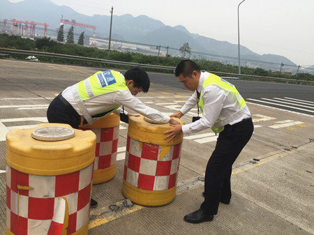 公司沿線四個收費站平穩實現路面養護施工期入口轉換 因G15沈海高速臺州段于2017年10月28日零時至11月16日24時封閉施工,施工期間,公司所轄路段溫嶺西、臺州南、臺州、臨海南實行交通管控,公司沿線各收費站、工程和交警、臺州市公路局等部門單位緊密配合,多措并舉,平穩實現收費站入口轉換。 為配合公司道路養護和黃土嶺右洞改造施工,公司征費系統提前在各收費站入口LED屏上發布施工信息,連夜安排趕印50000份施工公告發放至四個收費所,提醒過往司乘人員提前規劃施工期間的出行路線。