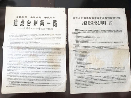 辦理業務的過程中,有個股東說:“臺州高速真是貼心,知道我們跑城里不方便,還上門辦理業務,就沖這個也要來把股票賣掉?!边€有個股東說:“臺州高速真好,我只投了200塊錢,除了給我一千多的分紅,現在216股還能賣1500多,非常合算,早知道買一萬股了?!?/span> 臨近中午的時候,來了一位面目普通的中年人,他準備了他父親和母親的身份證還有銀行卡,工作人員以為是兩筆代辦業務,原來是查詢股東紀錄的,查詢的股東名字叫婁巖奶,因為巖奶兩字比較少見,我記得上午的時候辦理過一個叫巖奶的股東的收購業務,就非常好奇的詢問,這時候管理處的工作人員解釋,他們這里有兩個叫巖奶的人,一個是婁巖奶,一個是宋巖奶,經過查詢卻沒有找到婁巖奶的股東信息。據管理處工作人員回憶,1993年婁巖奶當時還未退休,應該購買了股票。經過查詢管理處的退休人員清冊,發現婁巖奶于1994年12月才退休,根據初步判斷估計該股東可能當時出于各種原因并沒有購買股票。為了慎重起見,于是工作人員請求管理處把股票購買的原始檔案調閱出來查看,翻開斑駁的原始記錄,一個一個仔細查詢股東姓名,但是很遺憾并沒有該股東的信息,工作人員肯定地回復了股東。雖然讓婁巖奶的兒子失望了,但是工作人員卻在斑駁的檔案中看到了非常珍貴的歷史檔案:《全區動員、全民參與、苦戰三年、建成臺州第一路—臺州高速公路建設宣傳提綱》、《浙江臺州高速公路建設開發股份有限公司招股說明書》,看著這些檔案,眼睛有些濕潤,仿佛又回到了那個波瀾壯闊的年代,也為高速集團曾經的創舉而驕傲。