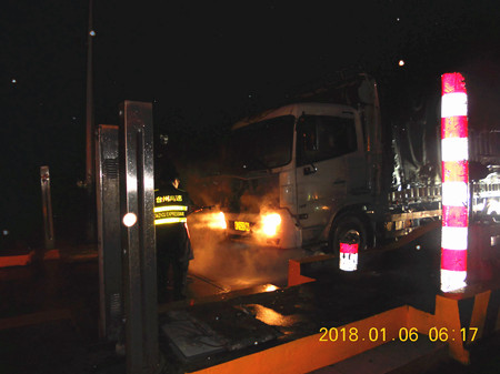 1月6日,一輛車牌為J52286的貨車著火,在收費員楊丹妮的應急救援下,成功控制住了火勢,沒有造成重大損失。 當天凌晨6:15,天還未亮,溫嶺西收費所還沉浸在一片安靜中,突然,收費車道上傳來一陣急剎車的聲音,收費員紛紛從倦意中驚醒。一輛車牌為浙J52286的貨車停在了收費車道上,駕駛員從駕駛室直接跳下車跑到收費窗口,急促地喊道:“有滅火器嗎?有滅火器嗎?車子著火了。”