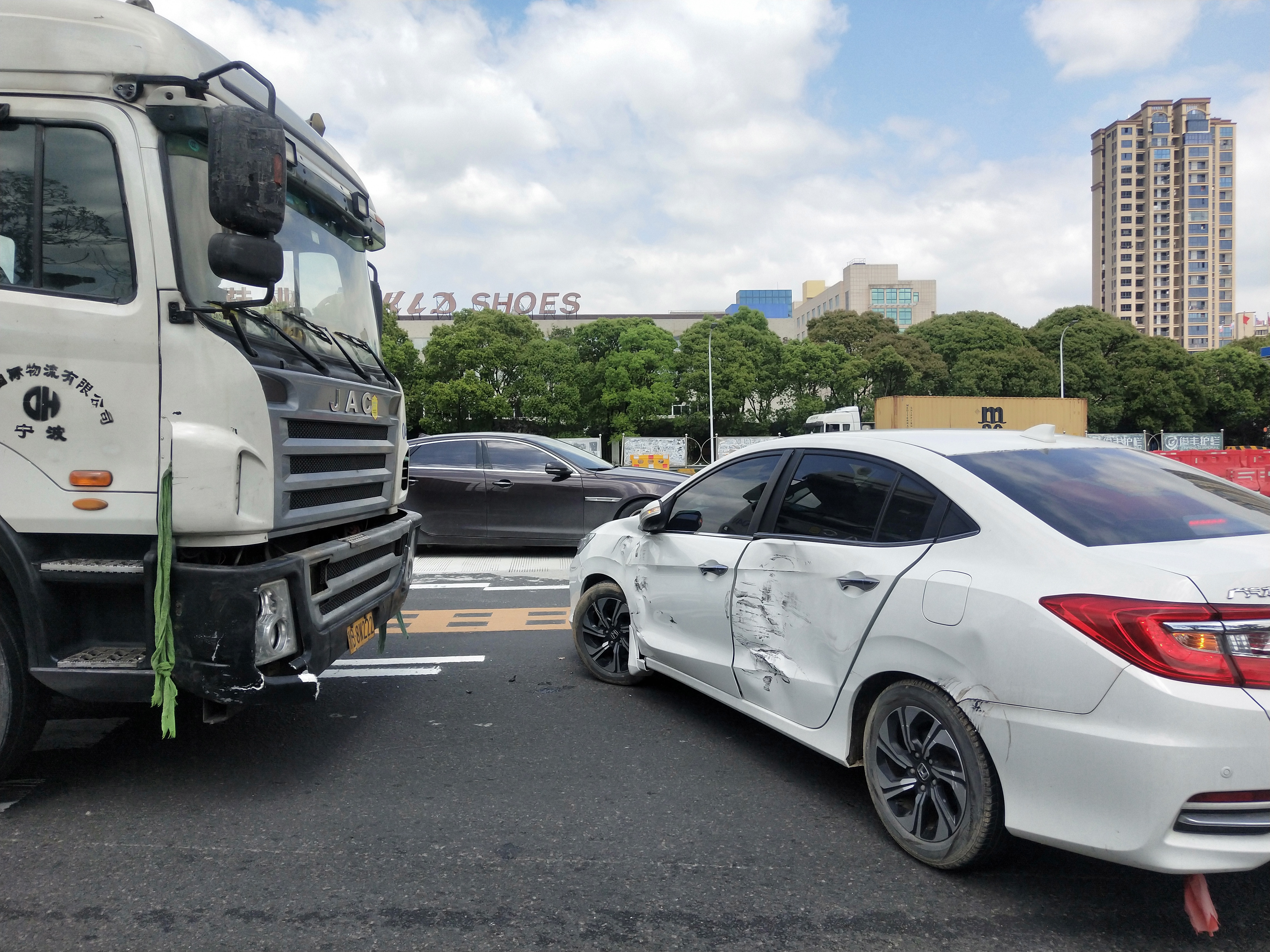 集裝箱收費站出口變道,兩車“親吻” 高速收費站出口,由于一些司機沒有減慢車速,沒有觀察左右方來車,或者因強行搶道而引發交通事故。 4月1日12點16分,在溫嶺西高速公路收費站出口,突然一聲巨響,大貨車司機緊急剎車,輪胎與地面劇烈摩擦。一輛車牌為浙B的集裝箱與一輛車牌為浙C的小轎車相撞,小轎車的車門瞬間被撞得凹凸不平,且整個車身橫在集裝箱車頭前面,現場看起來似乎是小轎車司機掉頭“變道”導致兩車相互“親吻”。