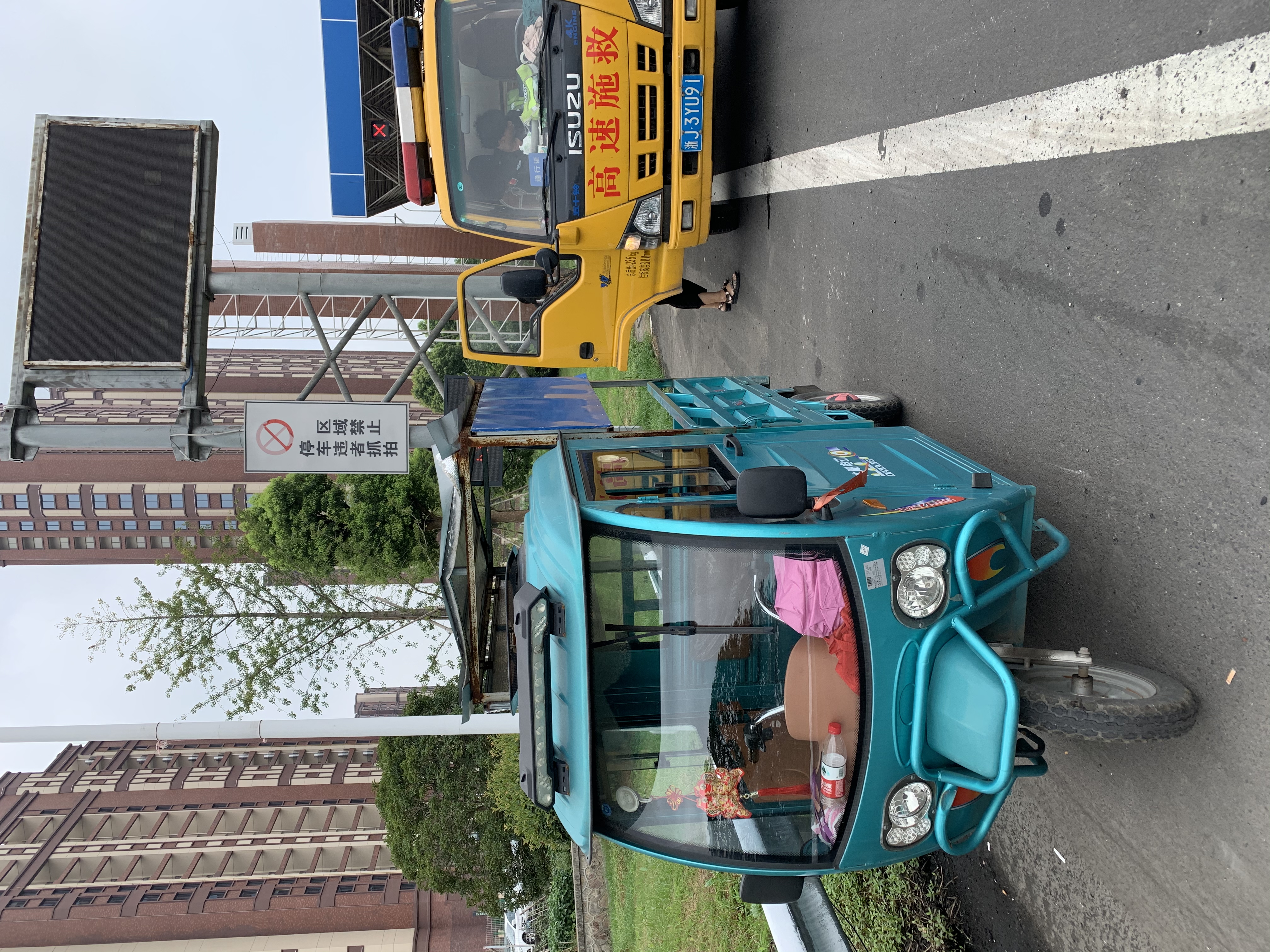 三輪車誤入高速 危險!??! 7月26日上午,一輛電動三輪車緊跟在大貨車后面開進臺州收費所入口車道,被發現后不顧收費員勸阻,撞開欄桿,直奔寧向入口匝道。 10點18分,收費員發現此電動三輪車緊隨大貨車試圖進入高速,立即勸阻,但三輪車主不聽勸,收費員準備出崗亭勸返時,她直接撞開欄桿向前行駛,收費員立即用對講機匯報了情況。此時正在出口處理特情的班長聽到后,快速往匝道口追去,邊追邊喊,并通知監控中心,然而三輪車加速前行。10點30分左右,交警在主線找到這輛三輪車并攔截住,10點50左右在高速救援車(輪胎車)的護送下,安全出高速。