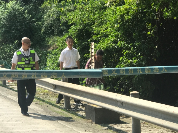 國慶期,臨海南收費站口一位年過花甲的附近村民執意要步行上高速,當班工作人員及時勸阻,一路陪同,保障了老人家的人身安全,也維護了高速公路的正常秩序。