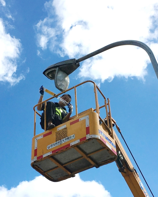 “我動作快而且都已經在上面了,換來換去又要浪費不少時間,早點修好早點恢復通車?!碑斖瓿傻谝槐K路燈,大家都勸他下來再換個人時,被他婉拒了......
