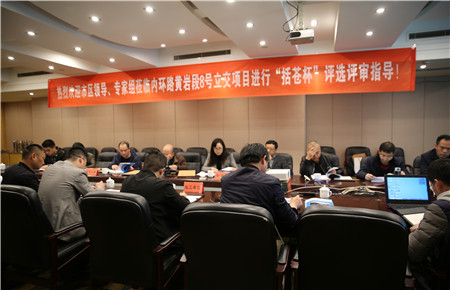 內環路8號立交項目申評“括蒼杯”特邀專家評審指導 今年4月份以來,2019年臺州市括蒼杯精品工程評審工作相繼展開,臺州市內環路8號立交工程繼去年榮獲臺州市標準化工地后,再接再厲,向括蒼杯發起沖刺。4月11日下午,評審委員會專家組來到黃巖,對浙江大成承建的臺州市內環路8號立交項目相關參評資料及工程實體建設情況進行了整體分析評價。作為該項目的BT建設單位,市政公司相關部門負責人列席了本次評審。